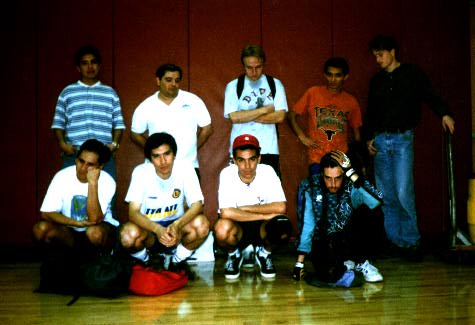 Up (l-r): Alfredo, Raúl, Andy, Oscar, and a loyal supporter.